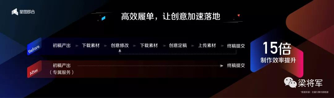可见,创意产能的释放,不止要靠人力,更要借助技术工具。而工具解决的不只能优化流程、提高效率,工具还帮我们重塑内容的供应链。比如,巨量引擎旗下的星图即合平台正在用全线上流程系统,释放效能。