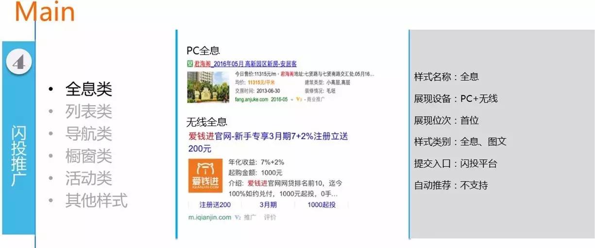 闪投推广,现在叫百度商品推广,依附于百度搜索推广(又称“凤巢”),是百度搜索推广功能的补充和升级。能有效利用客户提供的结构化产品信息,使百度搜索推广(又称“凤巢”)用户投放更便捷,带来更多流量。