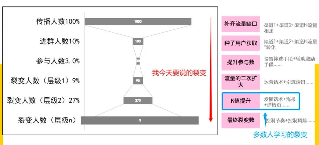 拿一场裂变活动来说,我们都知道很多裂变不是死于起量,而是死于被封。如果不复盘,你不会知道什么时间段增长容易过快;如果不复盘,你不会知道做裂变活动要准备备用链接;如果不复盘,你根本不知道要设置活码进行分流。