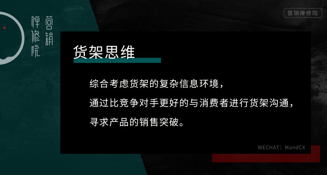 这就是一种货架思维,综合考虑货架的复杂信息环境,通过比竞争对手更好的与消费者进行货架沟通,寻求产品的销售突破。