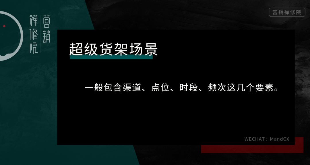 超级货架场景一般包含渠道、点位、时段、频次这几个要素。
