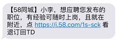 不知道什么时候帮别人家的肠粉店发了一个招工广告,一段时间登录58之后成为了人家平台的一名流失用户,我就收到了这样一条短信。对于社交平台,可以告诉用户你离开的这段时间有多少朋友还在更新状态。对于招聘平台,可以告诉用户你的岗位还有人在投递简历,让用户有欲望回来你的平台看看。