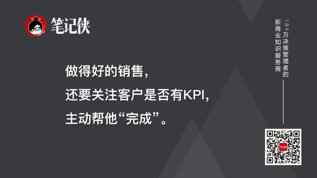做得好的销售,还要关注客户是否有KPI,主动帮他"完成"。