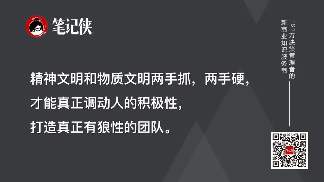 精神文明和物质文明两手抓,两手硬,才能真正调动人的积极性,打造真正有狼性的团队。