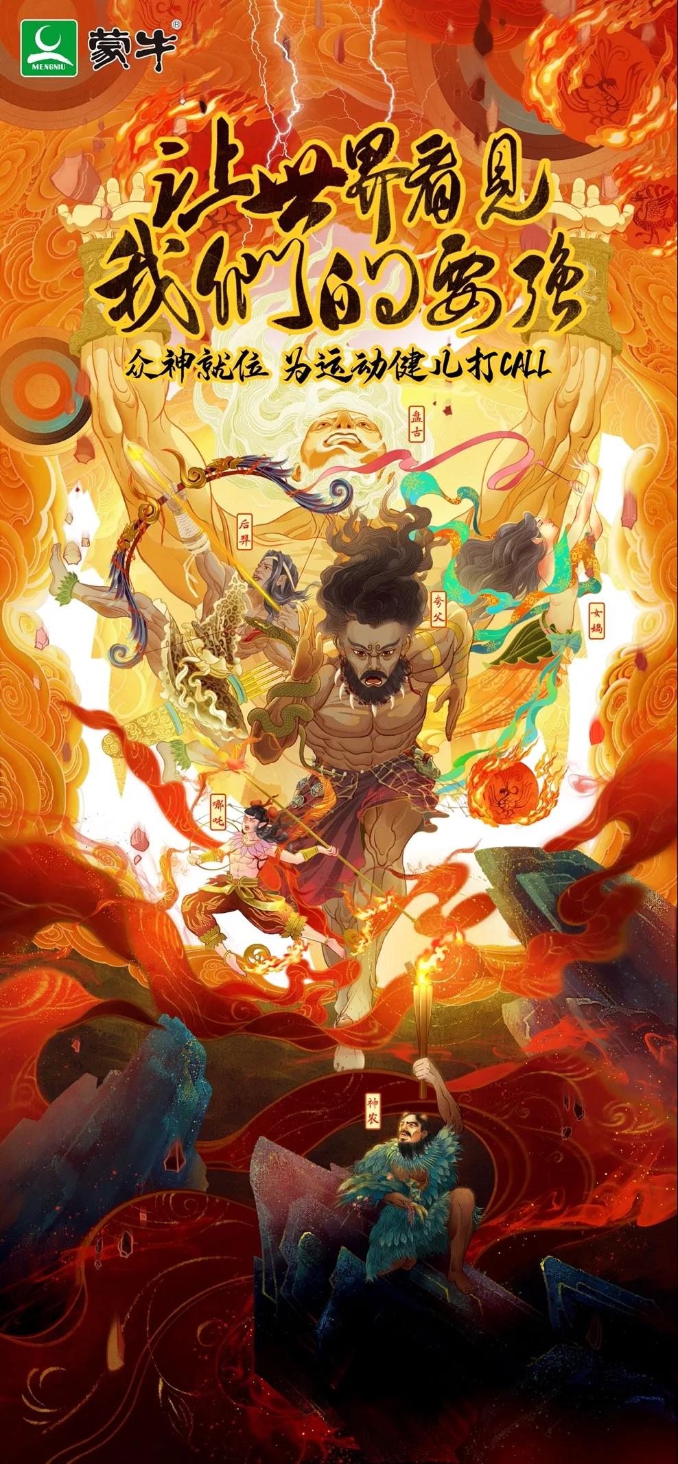 其次,在形式上,把运动项目和中国古代神话英雄相结合。