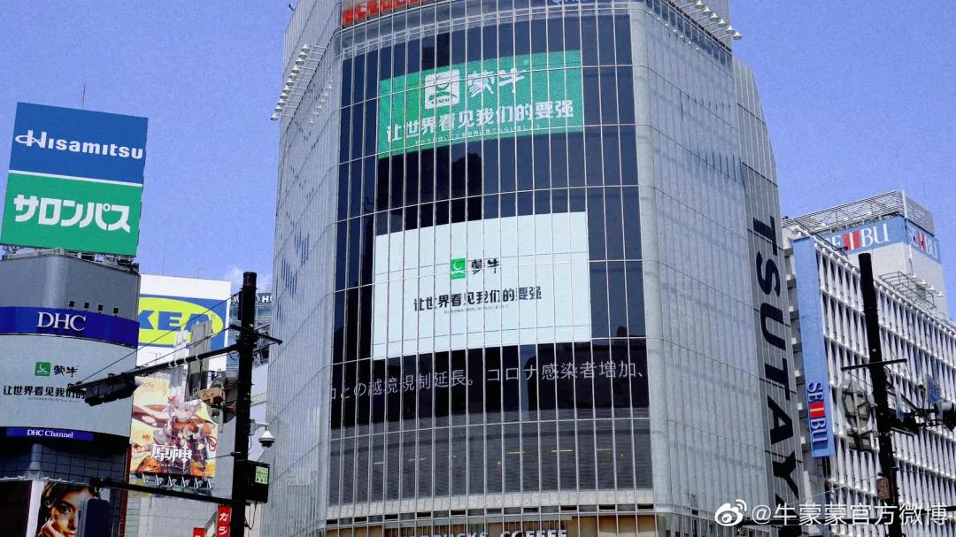 在线下,在东京涩谷的户外广告大屏上,投放了一组应援的文案。
