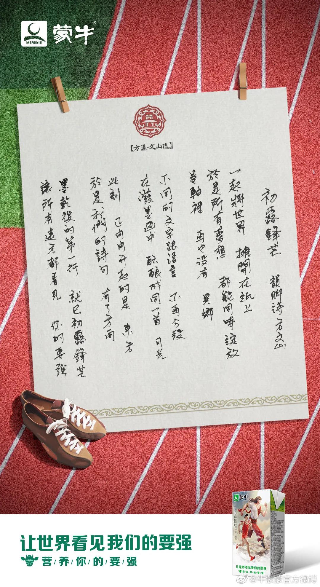 某种程度上,这不仅实现一种民族自信的输出,也是强化蒙牛作为国民品牌的正面形象和社会责任。
