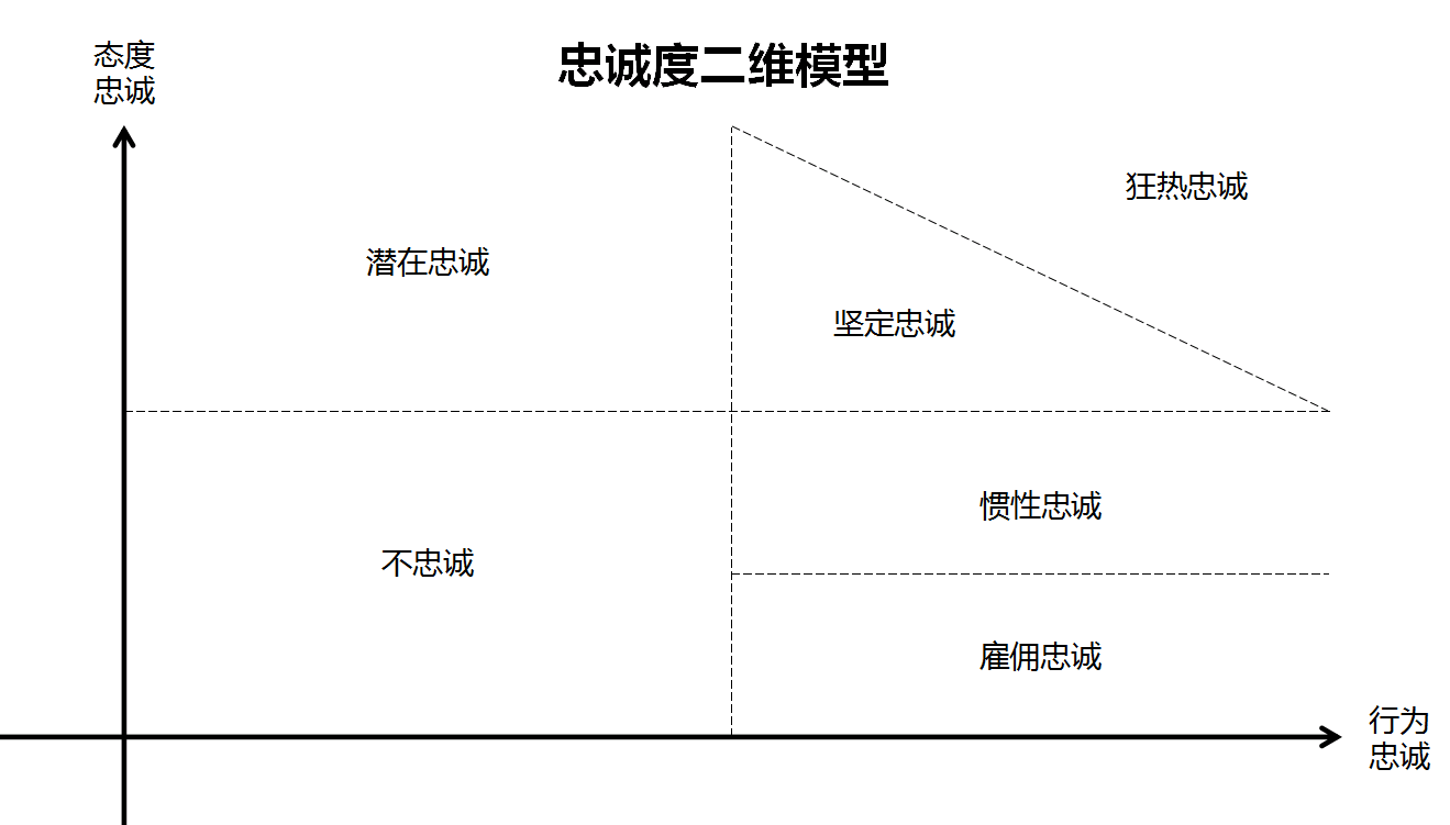 根据用户的行为忠诚和态度忠诚的深度,我们建立以下二维模型。