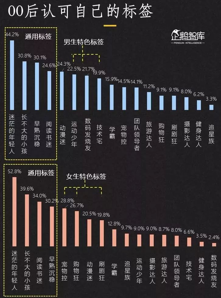 男孩更痴迷于运动、数码、游戏、IP 周边,女孩更喜欢购物、刷剧、追星、宠物;