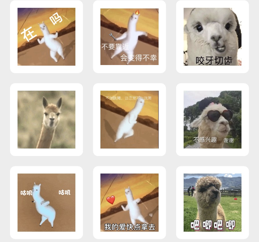 在拉丁美洲,以土著动物羊驼为主角,配上"Ola K Ase"(Ola K Ase为Hola qué hace的简写,西班牙语意为"你在干什么呢")。基于拉美人对羊驼的驯化,结合现实语境,这里的羊驼图片便被赋予了轻蔑与讥讽的意义。