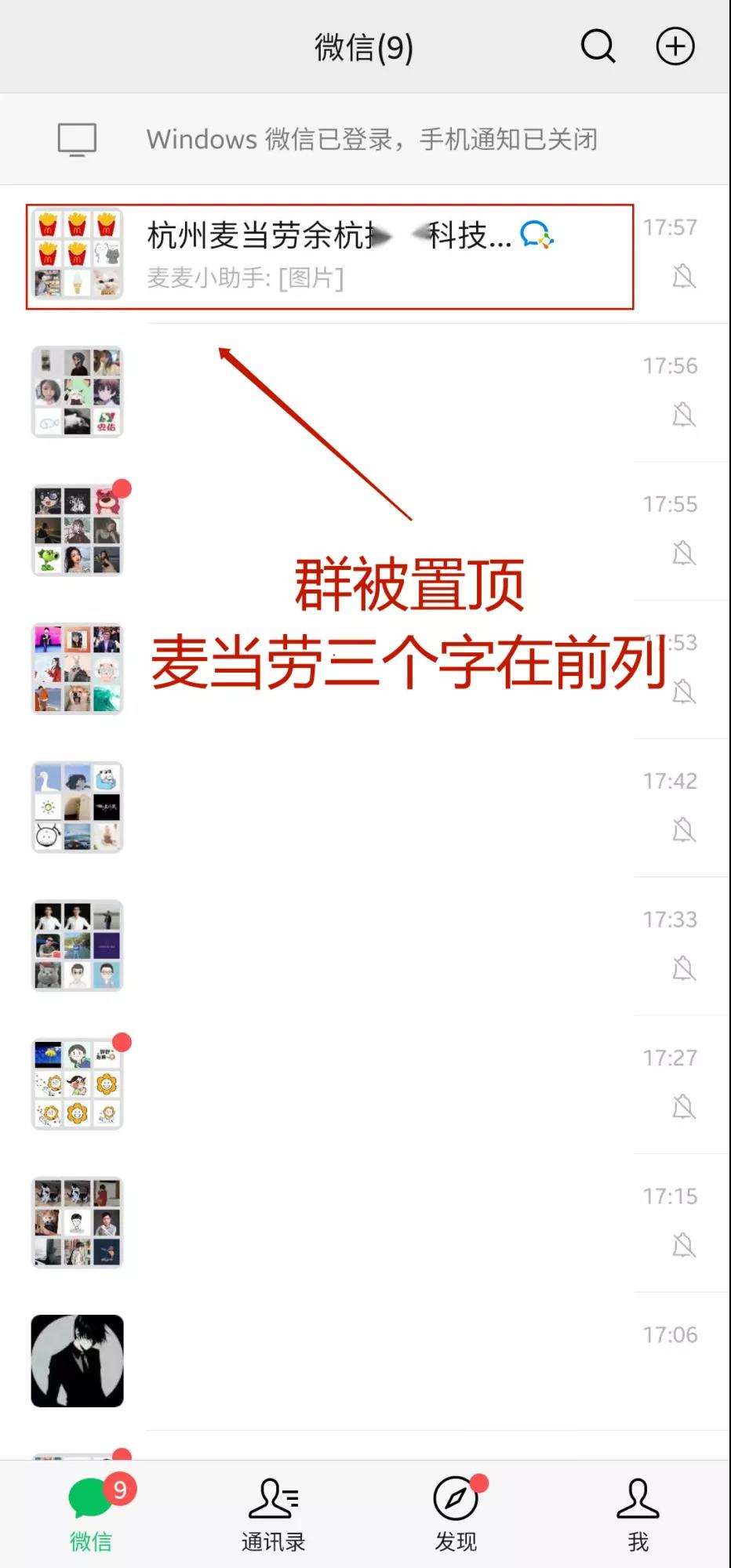 比如,快中午了,你不知道吃什么。麦当劳刚好在群内推送了优惠,群被置顶了。你刷微信看到后,点进去发现居然有优惠,那么下单的可能性也就高了很多。