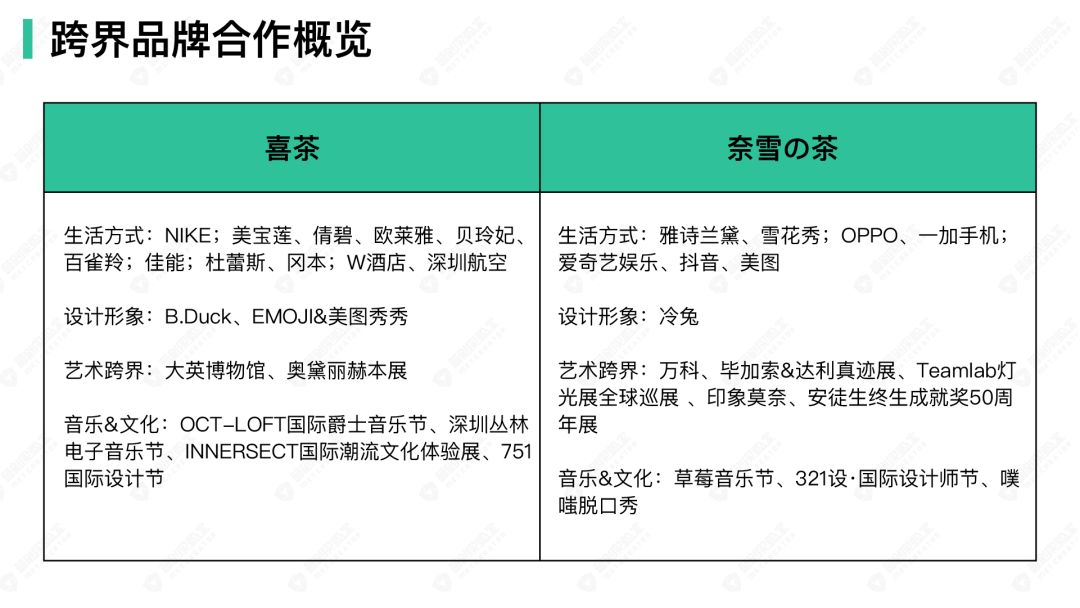 跨界双方的品牌势能共同创造价值:喜茶的调性是合作方的最爱,奈雪的空间场景成为优势。