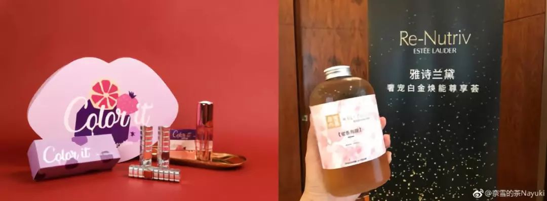 喜茶X欧莱雅(左)奈雪X雅诗兰黛(右)