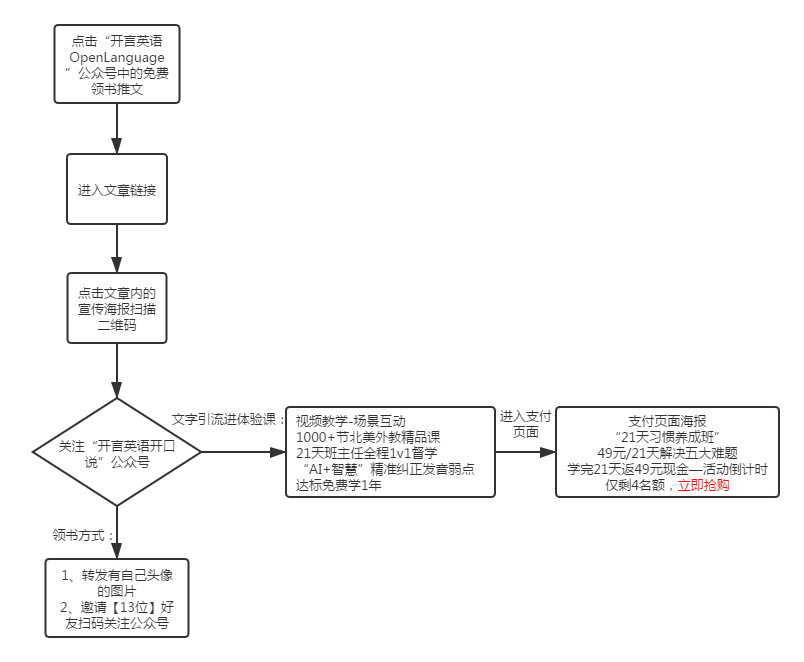 由文字信息引导的优先级可见,这次活动的主要目标是通过送书活动引流到体验课中,然后再完成送书活动所需的条件。