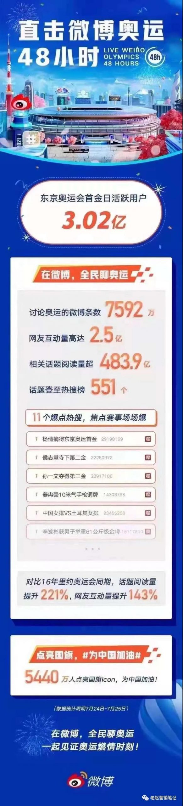现在品牌可选的营销渠道非常多,实际上每种渠道都有其达到最大效果的前提。比如奥运营销最合适的渠道其实是在微博。从数据上看,奥运首金日微博的DAU达到3.02亿,用户在奥运开幕后首个周末发布了7592万条奥运相关的博文,互动量累计超过2.5亿次,相关话题阅读量超过483.9亿次,和上一届里约奥运会相比,网友互动量提升了143%,话题阅读量提升了221%。用户看奥运,聊奥运的主要平台其实是微博,所以品牌在做奥运营销的时候,也应该顺应用户任务,首选平台其实也应该是微博,而不是其他内容平台。
