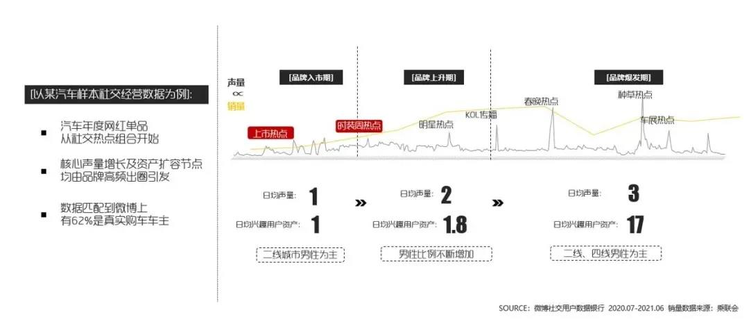 微博通过热点的结合,帮助品牌在产品推出、崛起、爆发的整个周期中,触达多个社交圈,实现产品的快速破圈。在一定周期内成为了汽车行业的网红爆品,也创下了业内销量奇迹。