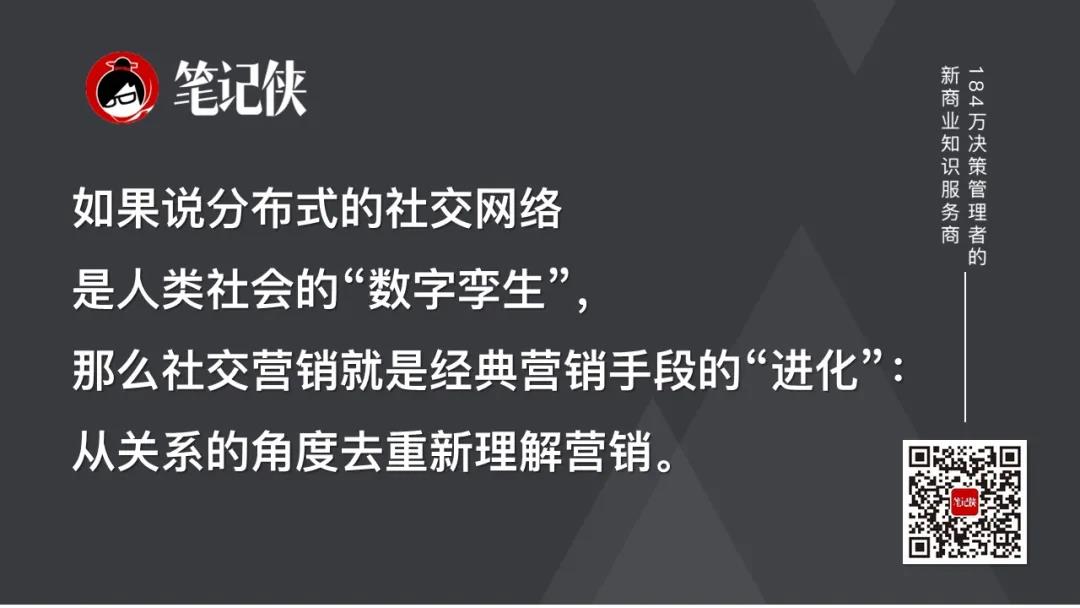 如果说分布式的社交网络是人类社会的"数字孪生",那么社交营销就是经典营销手段的"进化":从关系的角度去重新理解营销。