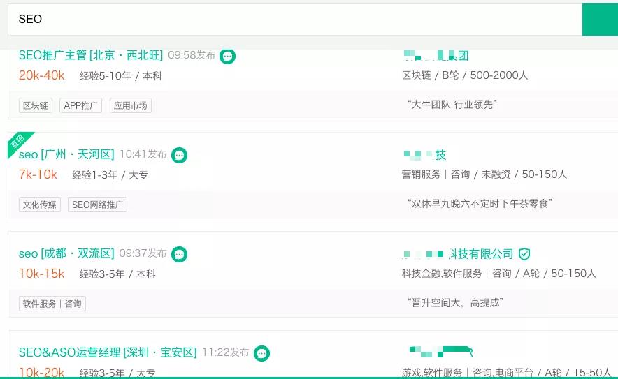 纯SEO待遇如何?我相信从业者心里都清楚。也可以留言,你在几线城市,SEO达到当地平均水平没?当然,老板也可以从招聘平台参考。