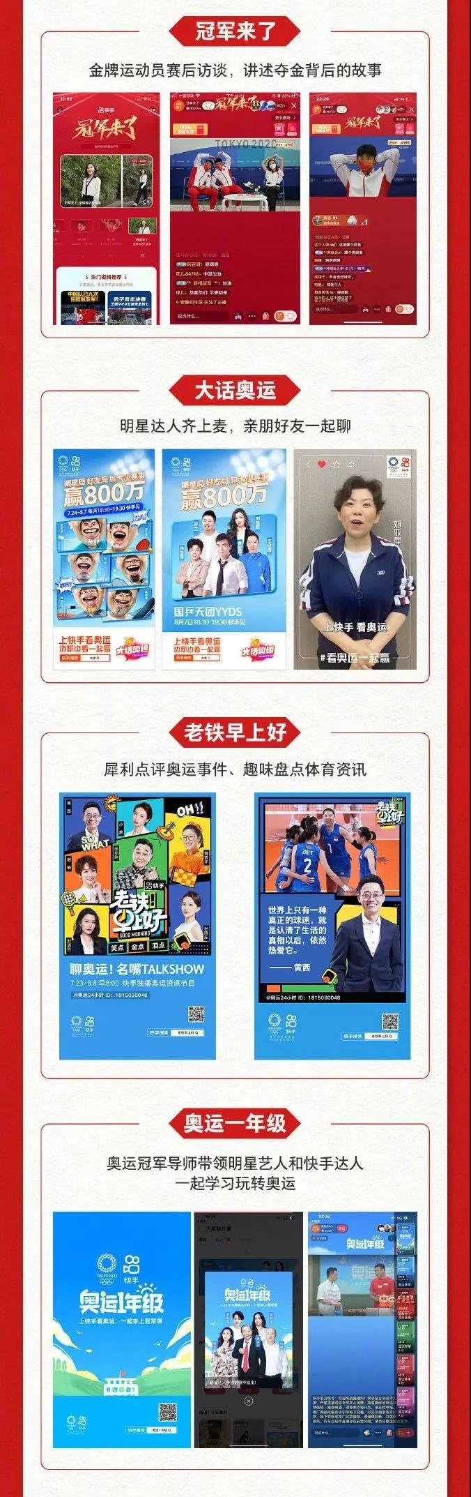 以此次东京奥运会,快手开设的3档长综艺为例,《老铁早上好》对标资讯类早间节目,《奥运一年级》对标卫视长综艺,《冠军来了》则是牵动媒体力量的视频现场报道。这三条应用于奥运场景的维度,实际也可能应用到平台的日常热点内容上,而除了体育之外,去年以来,快手在短剧、喜剧IP等方面就也有类似的探索。