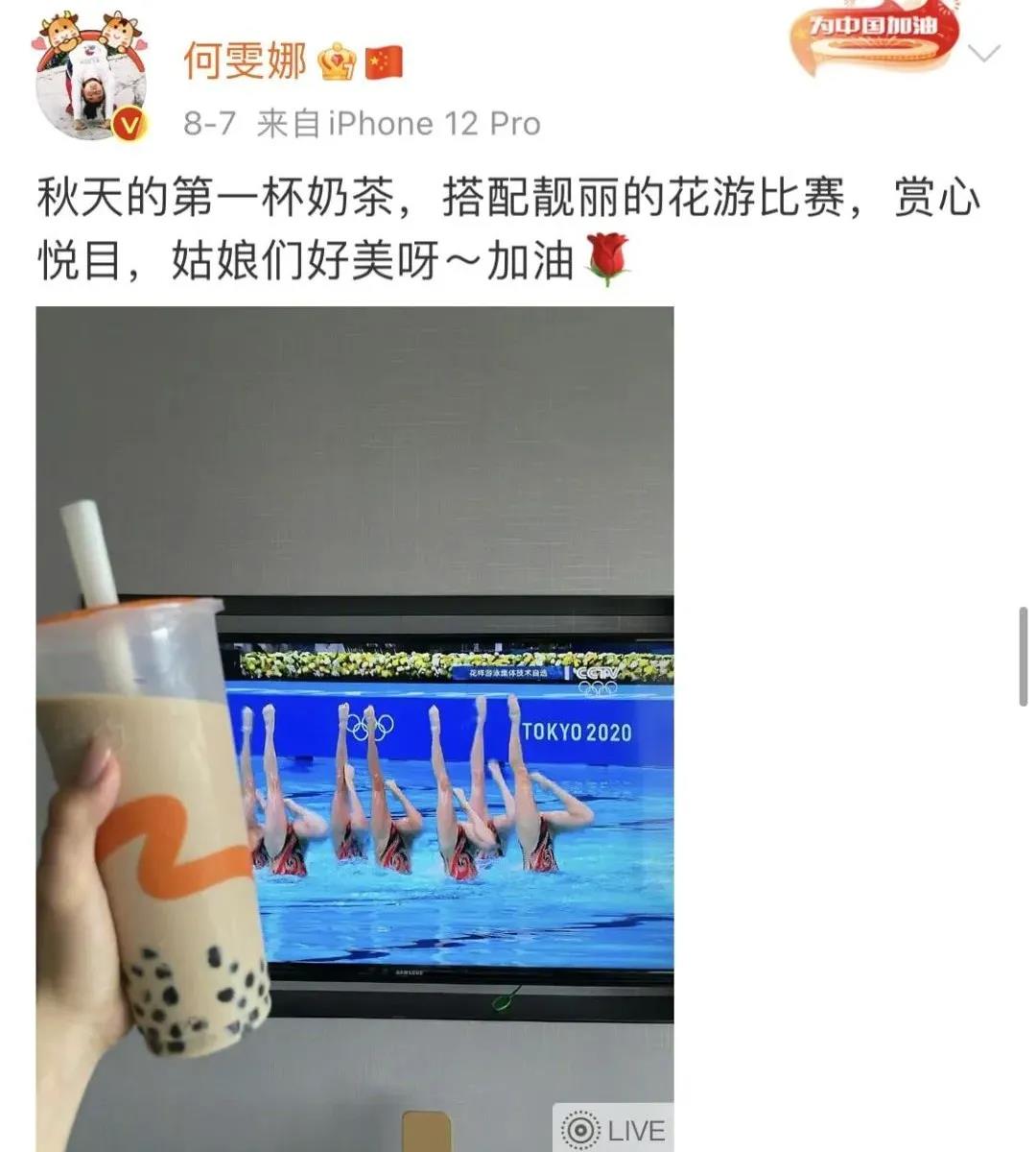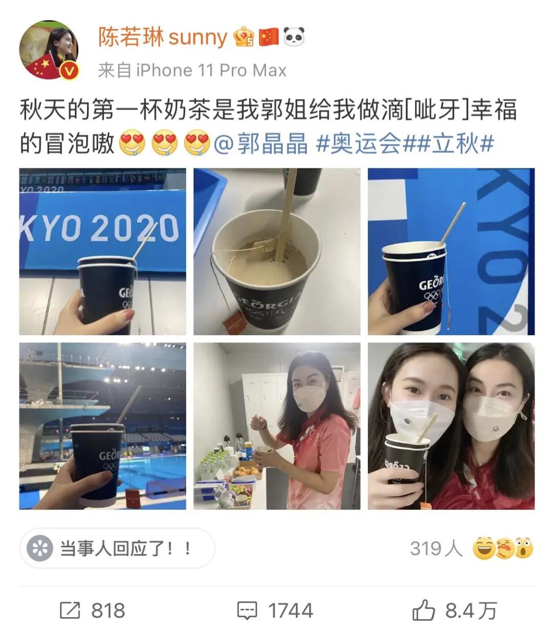 随着话题刷屏,奥运冠军也参与到了此话题中来,陈若琳、何雯娜等纷纷晒出了自己专属的秋天第一杯奶茶,助力话题热度持续的攀升。