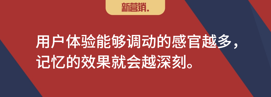 感官分为:视觉,听觉,味觉,嗅觉,触觉。一次用户体验,能够调动的感官越多,记忆的效果就会越深刻。