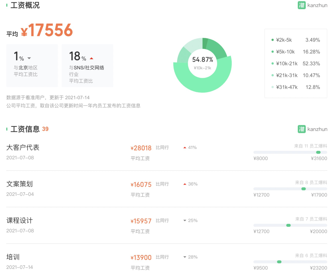 在这里我们就可以看到他们所招聘的岗位是高于同行平均还是低于同行平均,你就可以知道选择这家公司的这家岗位是不是一个好的选择。