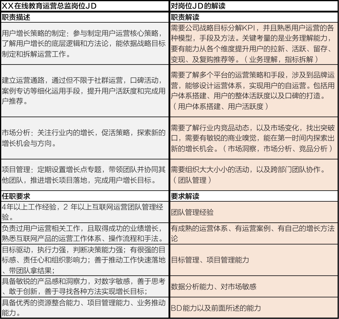 通过解读之后,再盘点自己拥有哪些能力,然后去进行一一匹配。