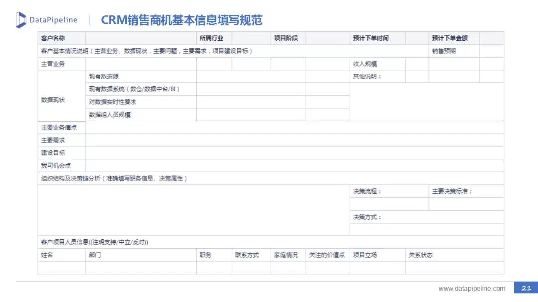 在落地执行上,需要规范CRM填写:做好数据沉淀及治理