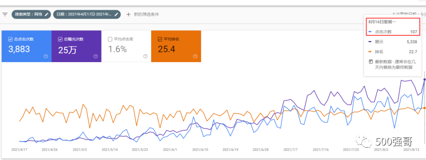 以下是强哥一个纯靠内容做的新外贸B2B网站,大家可以看一下效果。首先流量,几个月从0到现在,已经有100多次点击每天了,而且在快速增长中:
