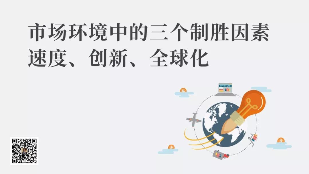 今天的市场环境中有三个制胜的关键因素:速度、创新、全球化。这三个关键因素对竞争特点的影响会围绕着市场价值全面深入地展开。我们只有不断地努力,以自身的变化来应对市场的变化,才能保持竞争中的地位。
