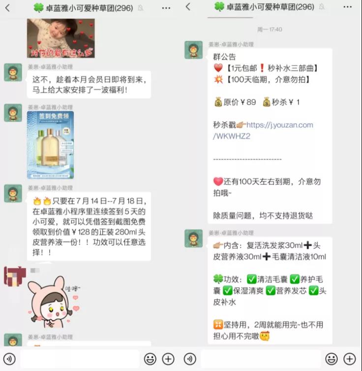 分为普通、会员两类群,群内进行深度化运营,基本上运营的5个群都能保持非常高的活跃度,同时每个群都有着200~300客户
