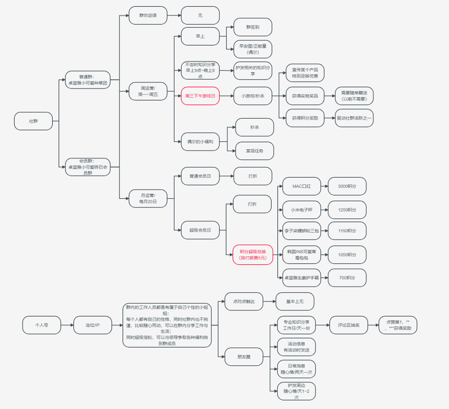 考虑卓蓝雅的产品线较少,以及复购频次较低,可以适当引进其他品牌的产品进行社群推广,进行异业联盟,以此增加社群的业绩以及活跃度