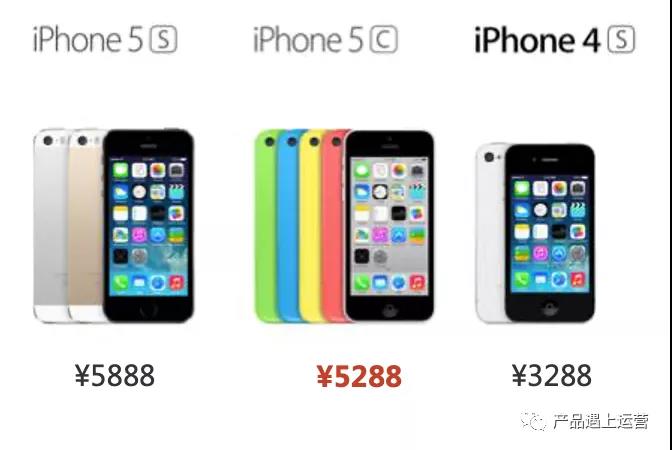 苹果是用这个策略的老手。有人认为,苹果当初推出定位尴尬的iPhone5C,就是一个诱饵选项。我研究了下iPhone5上市时苹果三款主流手机的价格,感觉这就是一个诱饵选项的案例。