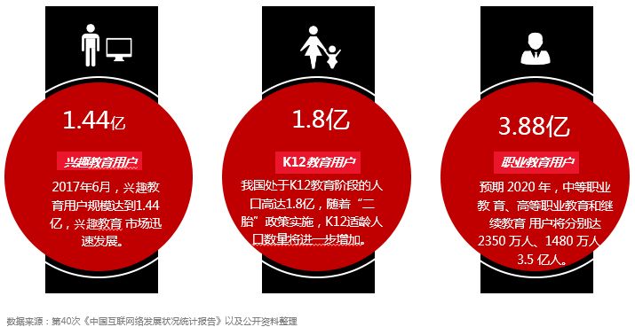 2017年6月,兴趣教育在教育行业所有用户中占比较少 ,但市场迅速增长