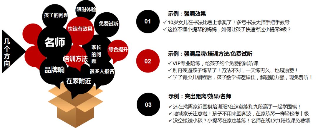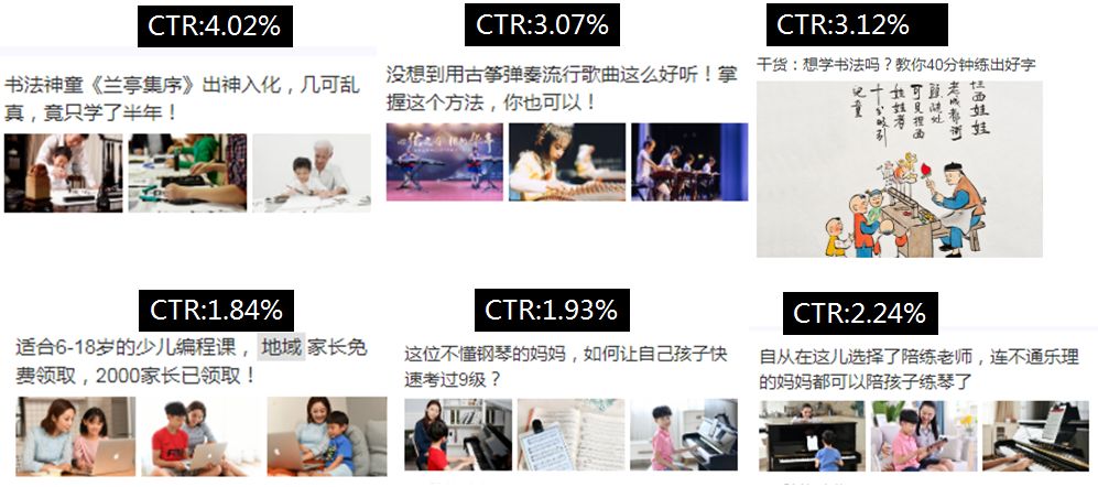 文案诉求:软广为主,围绕家长关心的问题,如:“书法神童”“不懂钢琴”“练出好字”等;图片设计:原生为主,场景图、真实状态、大图特写更易引发点击和转化。