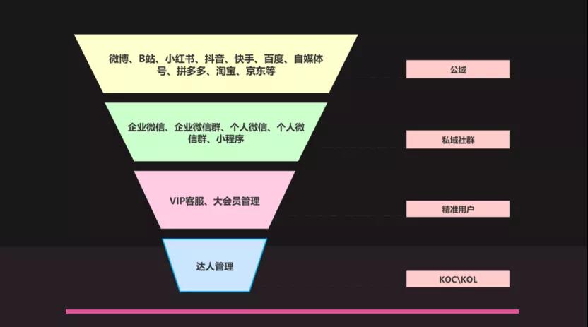 私域其实就是一把手的工程,很多时候一定要老板亲自主抓并且重视才能够做好私域流量的搭建。如果老板自己不重视,那么基本上也做不好私域。对于这两种,老板觉得很重要但是不会的客户,我们会通过私域体系的搭建来协助进行流量的积累和沉淀,通过公域流量的资源盘点,到私域社群的承接转化,再到精准KOL和用户的分层筛选,从而达到极小的运营成本能获得更高效的私域转化效果。