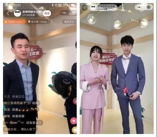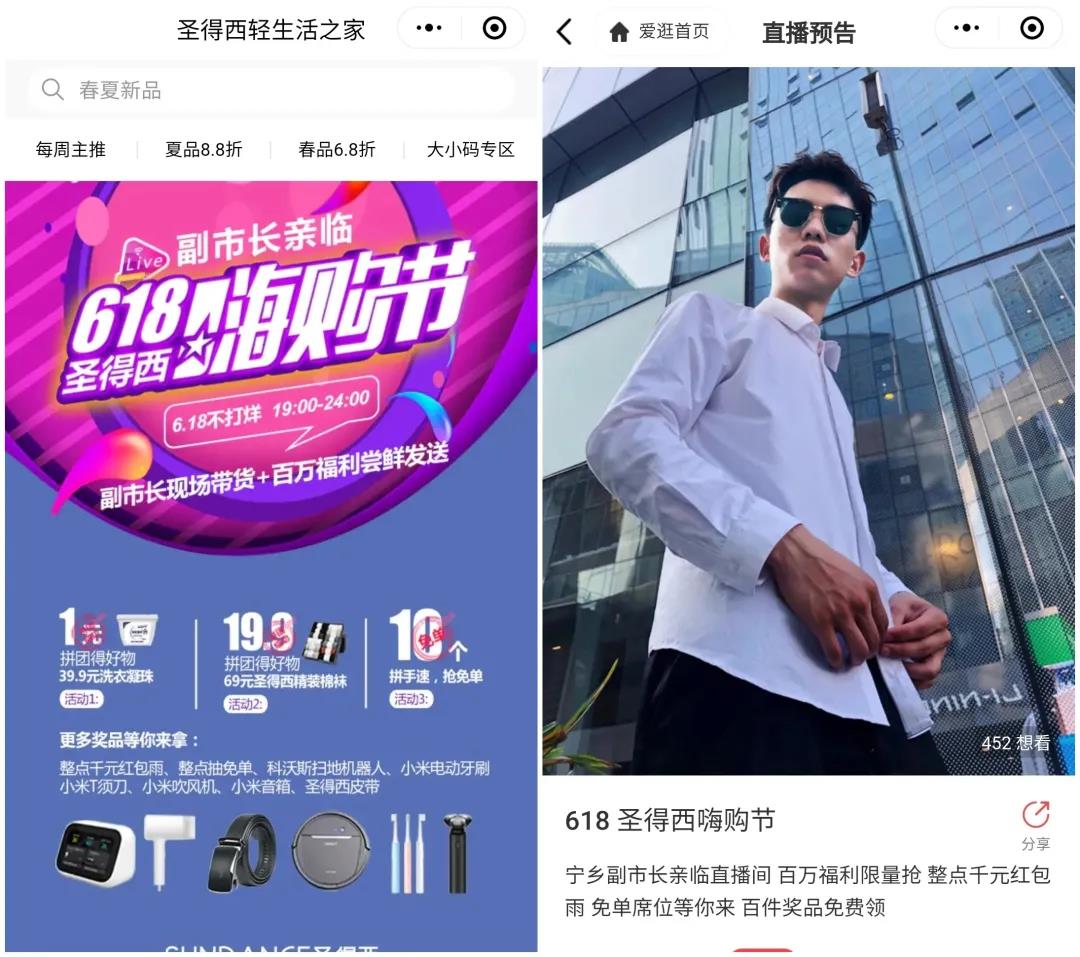 圣得西男装是一个来自湖南的品牌,在线下经营长达十多年,后期接入微商城,同时通过小程序试水直播。