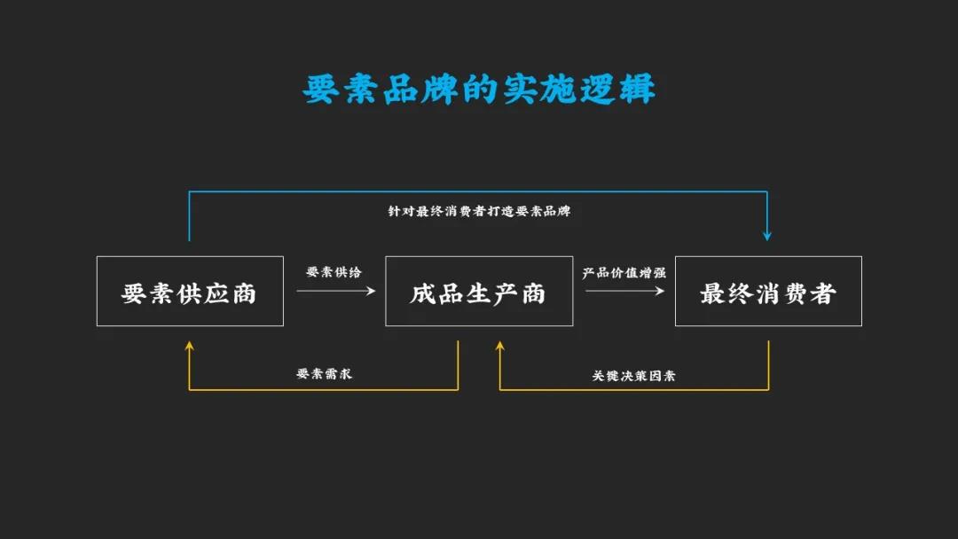 它的实施逻辑就是这些要素的供应商,跳过下游的成品生产商,直接针对最终成品购买消费者进行品牌打造和传播推广,通过影响他们的决策行为,从而倒逼成品生产商对自己产生更强的供给需求。