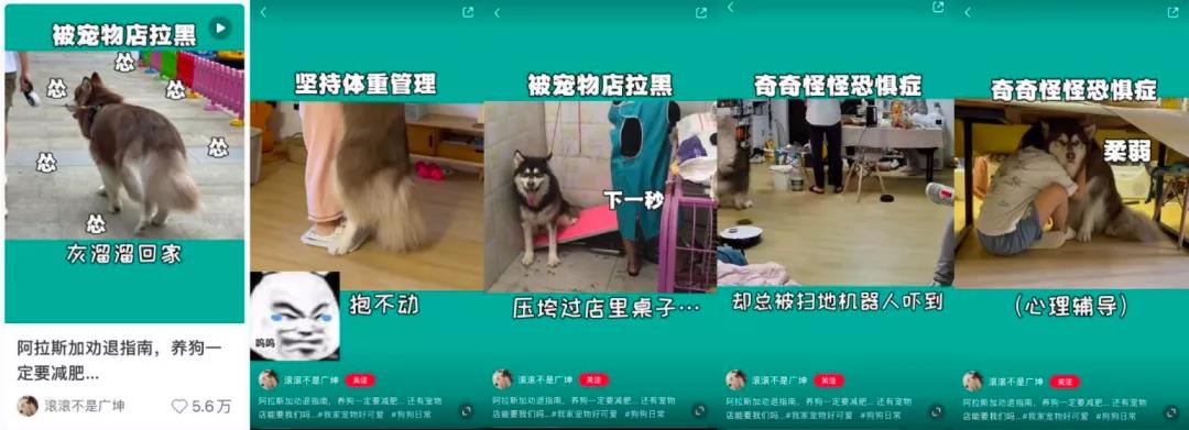 视频以阿拉斯加开始的力气大又闹腾,甚至被宠物店"拉黑"的形象,与后面恐惧扫地机器人,形成反差萌,既可爱又搞笑。