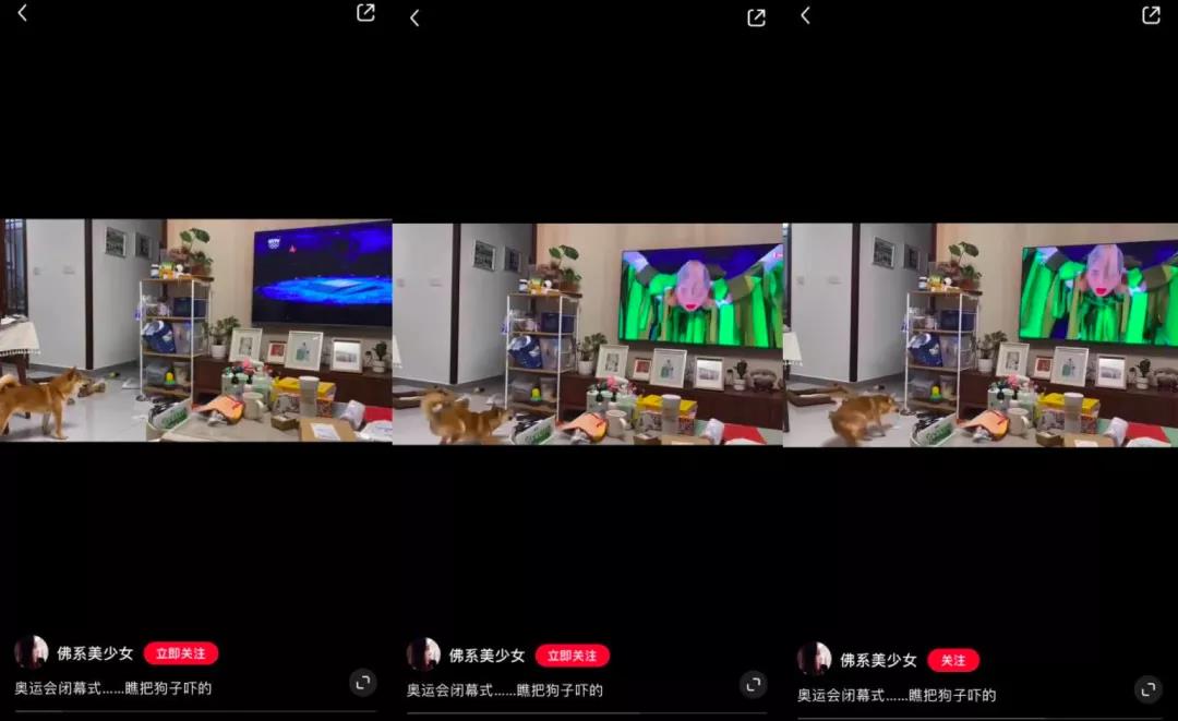 这个视频的亮点是发布的时机,在奥运会期间,全民关注度高。闭幕式话题的讨论更多是吐槽向,所以拍下狗子看闭幕式时的反应,其实也是很贴合网络上吐槽的点,能够更戳中笑点。