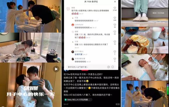 博主的视频内容,给人一种美好的氛围感。无论是月子中心的环境、饮食、服务,还是宝妈的情绪和状态,都是舒适的。会让人觉得,即使是昂贵的费用,也是值得的。这部分内容会让小红书用户们的羡慕,这触发她们的共鸣。"有钱真好。"