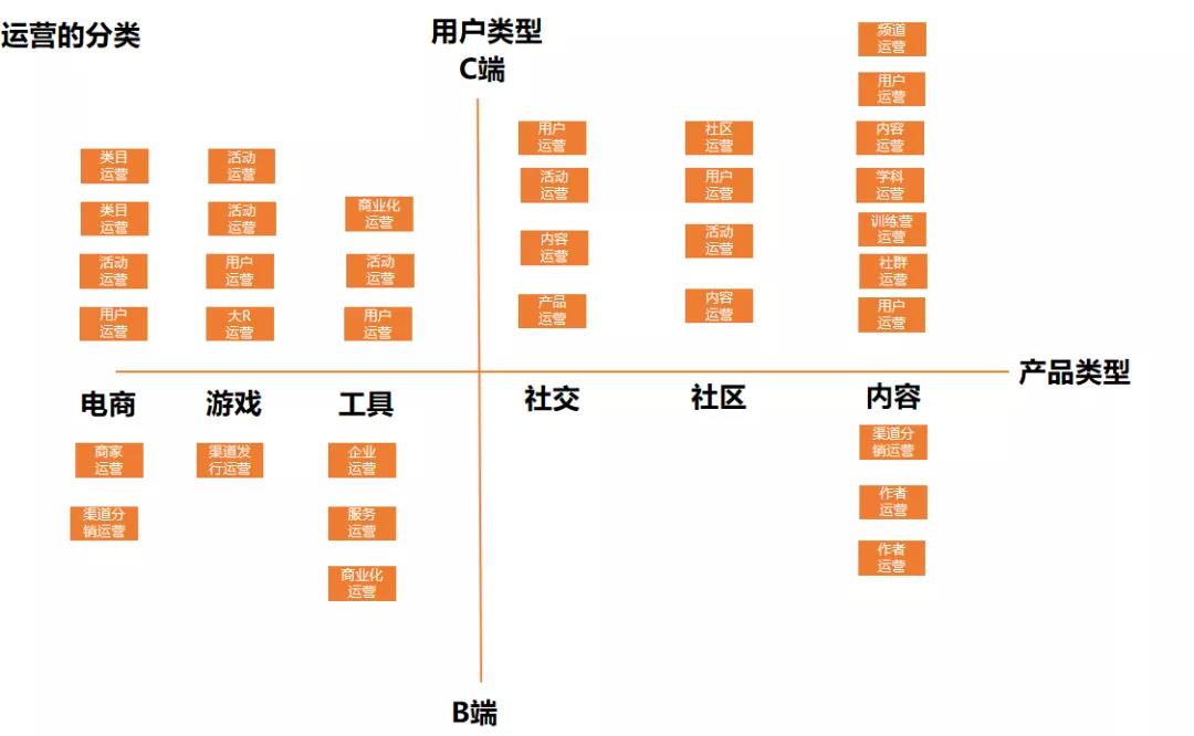 当然,按照不同的产品形式,以上4个运营版块也会存在一些差异。产品上,我更倾向于将产品分为:直接付费转化类产品、社区型产品和工具类产品。按照用户的不同,也可以分为C端和B端产品,这里也会存在比较大的差异。