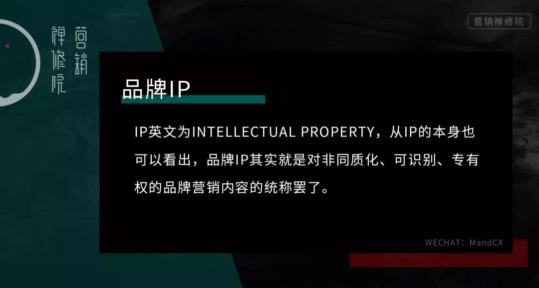 于是所谓的品牌IP出现了,IP英文为Intellectual Property,从IP的本身也可以看出,品牌IP其实就是对非同质化、可识别、专有权的品牌营销内容的统称罢了。
