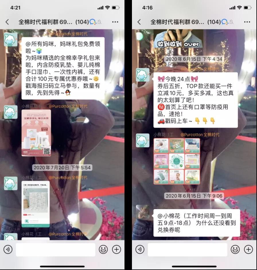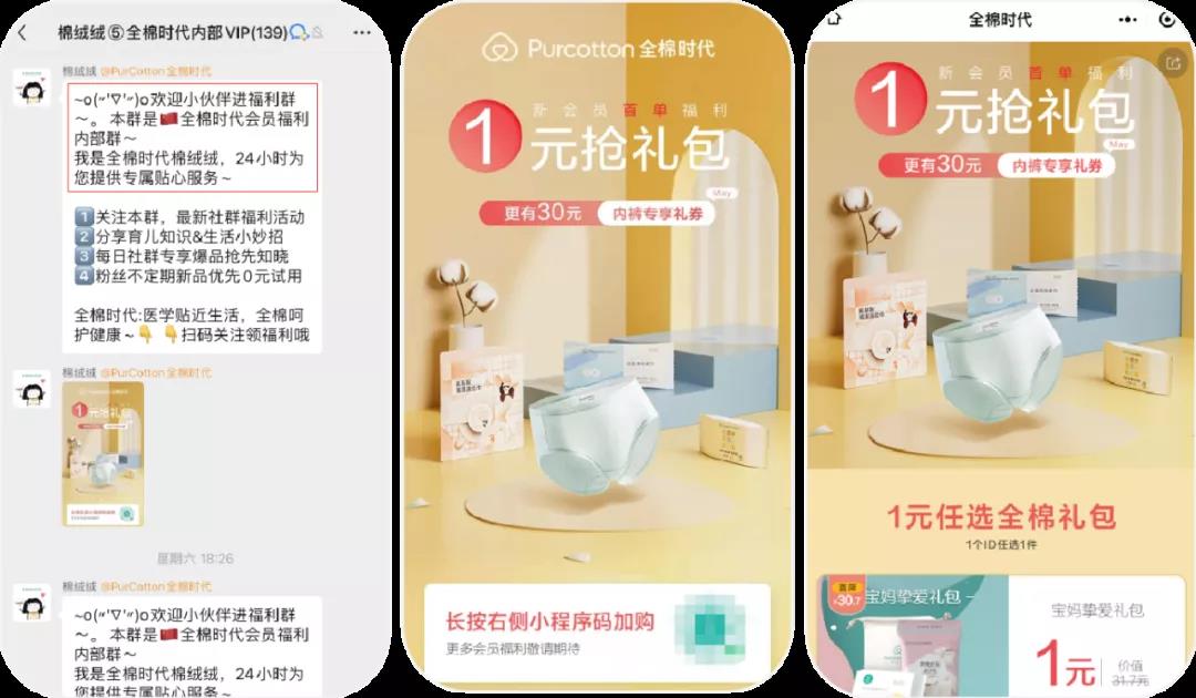 告知群的定位:全棉时代会员福利内部群——营造私密、身份感。