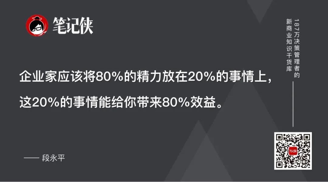 2.一个企业家应该将80%的精力放在20%的事情上,这20%的事情能给你带来80%效益。