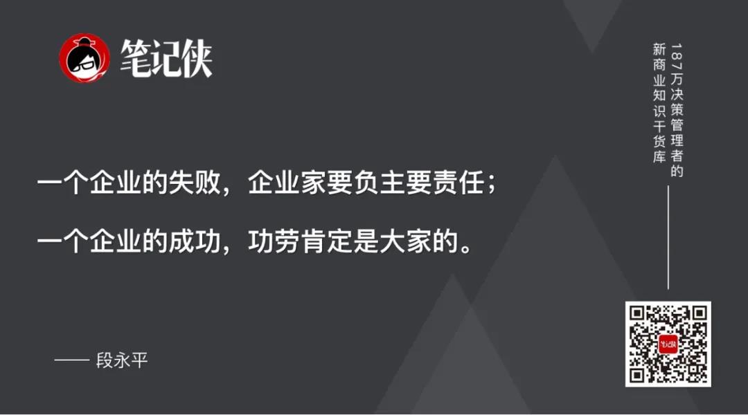 8.一个企业的失败,企业家要负主要责任;一个企业的成功,功劳肯定是大家的。