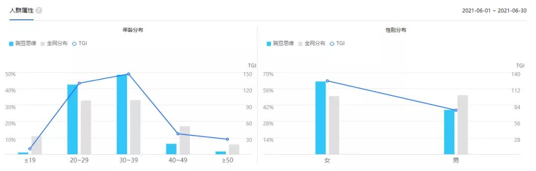 20-29岁用户占比42.46%;30-39岁用户占比48.42%。豌豆思维学生群体为3-12岁少儿,家长主要是80后,90后。较去年同期数字相比,20-29岁家长比例显著提升。