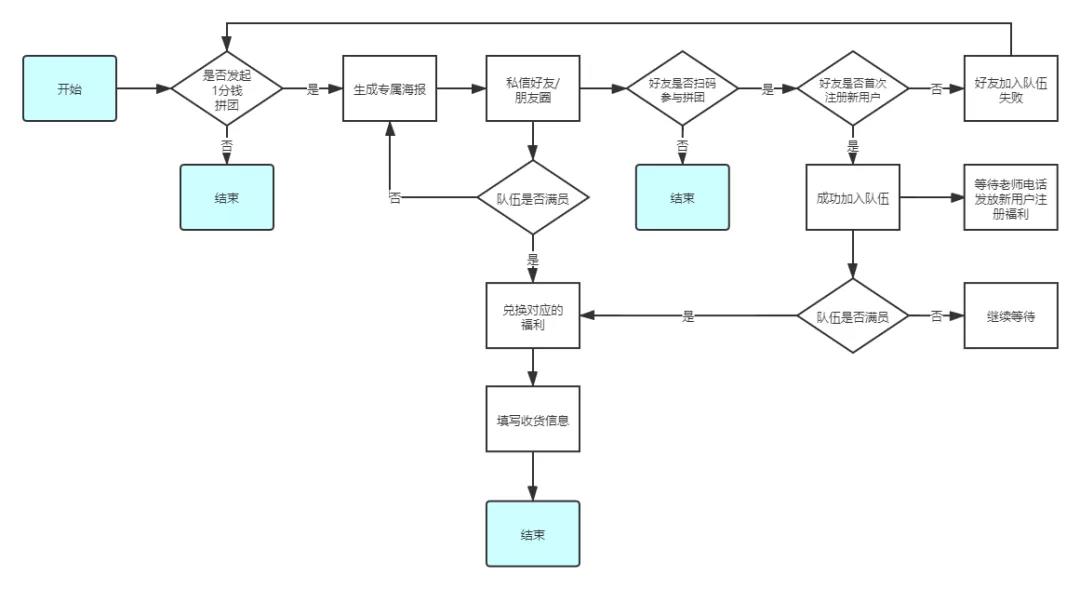 行为上:门槛较低,最低邀请1人即可拼团,拼团仅需支付1分钱