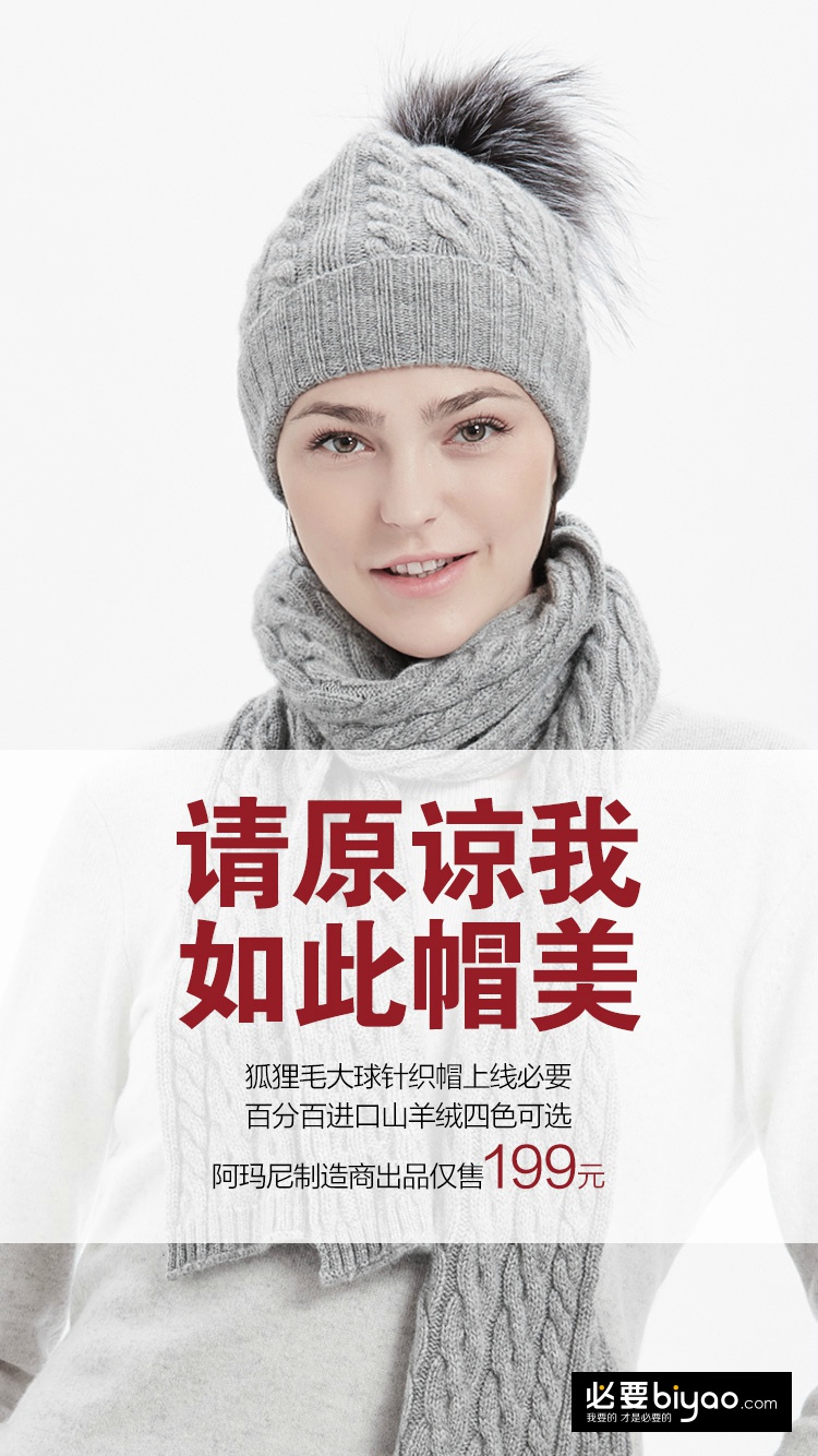 产品:狐狸毛大球针织帽文案:请原谅我,如此帽美