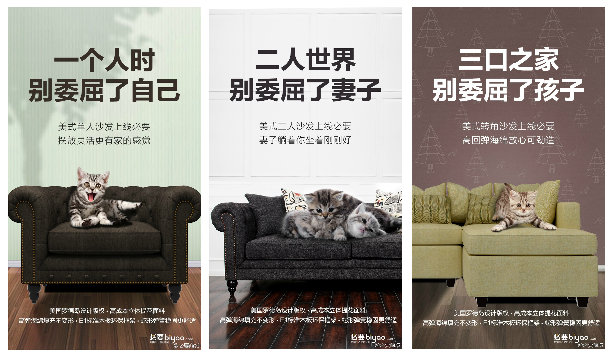 产品:美式沙发文案:一个人时,别委屈了自己。二人世界,别委屈了妻子。三口之家,别委屈了孩子。